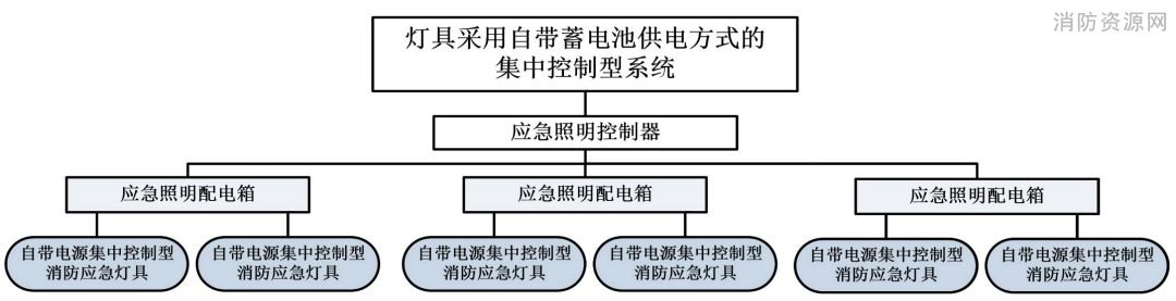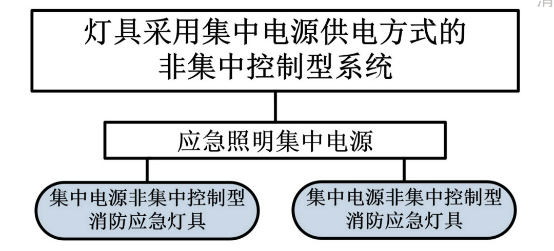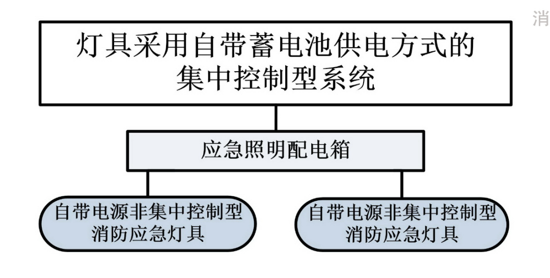 一、消防应急照明和疏散指示系统按消防应急灯具的控制方式可分为集中控制型系统和非集中控制型系统。 1. 集中控制型:由应急照明控制器集中控制并显示集中控制型消防应急灯具工作状态。 2. 非集中控制型:由应急照明集中电源或应急照明配电箱控制非集中控制型消防应急灯具应急启动。 二、蓄电池电源的供电方式分为集中电源供电方式和灯具自带蓄电池供电方式。 1. 当灯具采用集中电源供电时,灯具的主电源和蓄电池电源应由集中电源提供,灯具主电源和蓄电池电源在集中电源内部实现输出转换后应由同一配电回路为灯具供电; 2. 当灯具采用自带蓄电池供电时,灯具的主电源应通过应急照明配电箱一级分配电后为灯具供电,应急照明配电箱的主电源输出断开后,灯具应自动转入自带蓄电池供电。